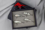 Väärt kingitus kalamehele, kes hindab jõeforelli püüki. Karbis on neli pimedas helendavat vooblerit: klassikaline lant, vöödiline röövik, vapsik ning uus mudel säbruga.