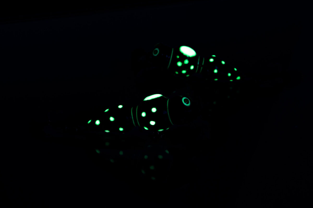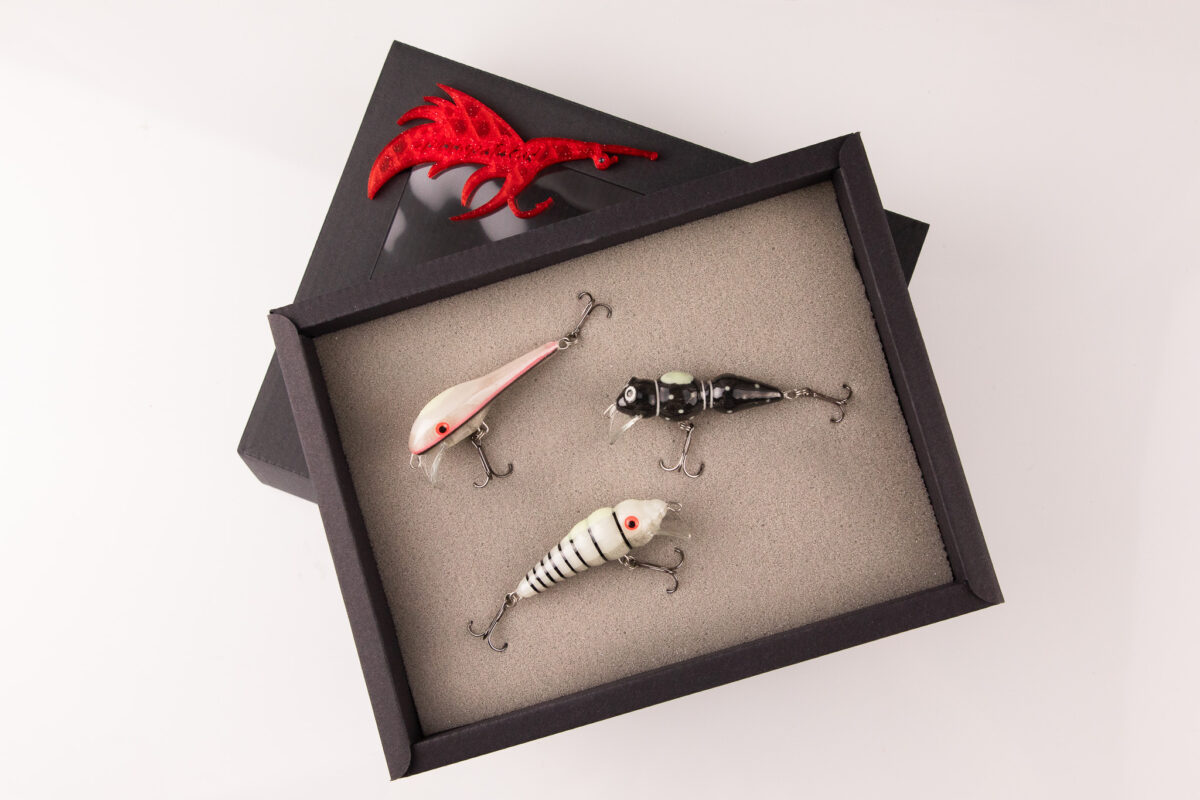 Väärt kingitus kalamehele, kes hindab jõeforelli püüki. Karbis on kolm vooblerit: pinnast tulev ööpüügi vapsik, vöödiline ööpüügi röövik ja klassikaline ööpüügi lant. Kõik landid on pealtpoolt kaetud pimedas helendava pastaga, mis valgust peale lastes helendavad. See muudab püügi pimedas mugavamaks ja lihtsamaks.