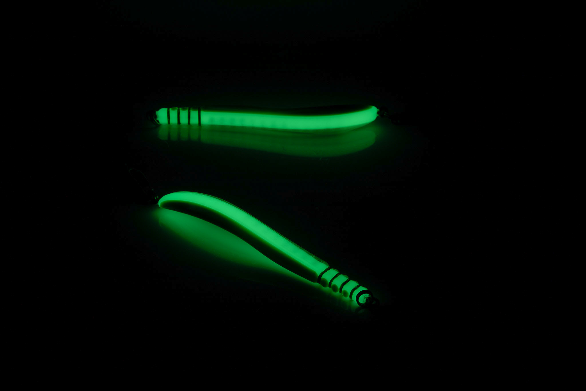 Landi üks külg on laimiroheline metallik ja teine külg on sädelev hõbedane ning kesk-osa on materjalist, mis pimedas helendab.