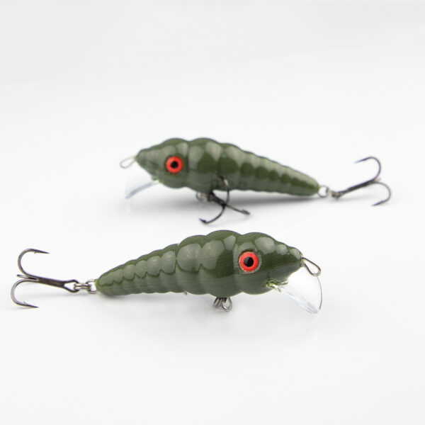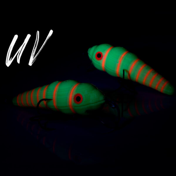 Uv silmadega lant forellile või teistele röövkaladele. Kindlasti pole tegemist kuigi populaarse värviga, kuid tean kalamehi, kes ainult sinakate/rohekate värvi lantidega püüavadki ja väidavad, et tegemist on parima tooniga, mida forellile pakkuda. Kuna ka meie käest on uuritud, millal on tulemas sellist tooni röövikut siis palun – siin ta on!
